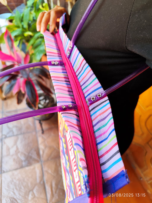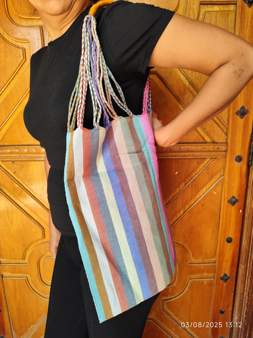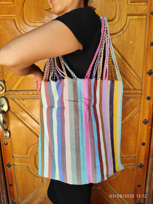 Sac cabas artisanal multicolore en tissu rayé