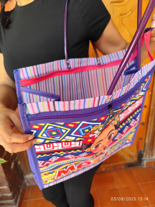 Sac cabas mexicain coloré "Frida" – Grand format avec motifs traditionnels