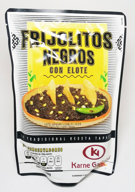 Frijol entero Negros con elote Karne Garibaldi en 420g / Haricots Noires cuisinés avec du piment et des graines de maïs blanc