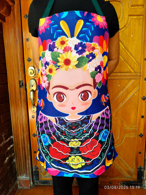 Tablier coloré "Frida kawaii" – Style mexicain avec fleurs et motifs folkloriques